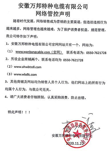 鄭重聲明:安徽萬邦特種電纜有限公司官方網站為:www_wanbangcable_com.hangpaifuwu.com,除此之外無任何子網站或合作網站,其余均為假冒偽劣。電話:0550-7621728 13485756353 地 址:安徽省天長市滁州高新技術產業開發區經四路29號